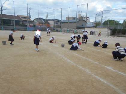 運動会の舞台となるグラウンドでは、「石拾い」が行われました。