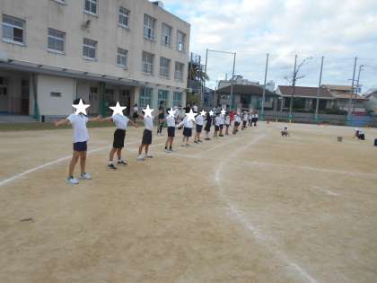 運動委員の中から選ばれた児童が、みんなの前で体操の見本を見せてくれました。