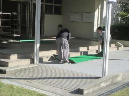 5時間目に子どもたちが各委員会で運動会の準備を終えたあと、今度は先生方や職員による準備がスタートしました。