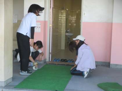 ラインの引き直し、トイレの清掃、看板やマットの設置など、校内のあちこちで作業が進められました。気づいたことをすぐに行動に移し、みんなで協力しながら「いい運動会にしよう!」という思いがあふれる時間となりました。