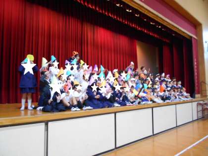 本日、ふれあい遠足が延期になったので、Happy Halloween Party を行いました。急遽だったので、衣装・飾りづくりに取り組めたのはわずか45分間でしたが、とっても可愛くてすてきなものができました。さすがたくましい1年生!作った衣装に身を包みいざ体育館へ。Halloweenの歌や運動会のダンス曲を流し、みんなで楽しく過ごしていました。