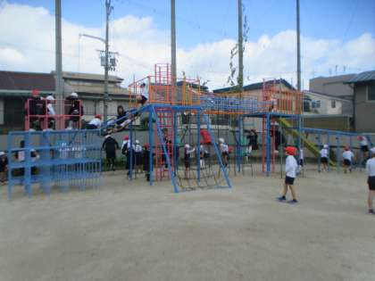 1学期に引き続き、ボール遊び、竹馬、なわとびなど、さまざまな運動遊具を使って活動を楽しんでいます。それぞれが自分の課題を持ち、挑戦したり、記録に挑んだりと、意欲的に取り組む姿が見られました。