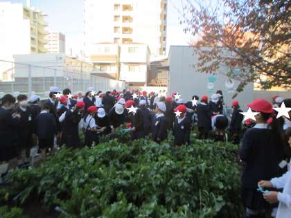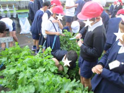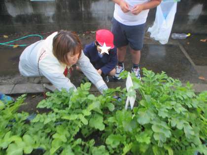 また、先週から続いていたアブラムシの大量発生への対応として、葉っぱを取り除く作業も行いました。子どもたちの手で一つひとつ整えられた大根は、ますます収穫が楽しみです。