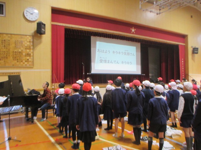 当日は、まずお世話になったゲストティーチャーの皆さんや「大ちゃんのうた」を作ってくださった福本さんに、感謝の気持ちを込めて大根をプレゼントしました。その後、福本さんのピアノ演奏に合わせて、子どもたちが練習してきた「田辺の大ちゃん」の歌を元気いっぱいに歌いました。会場は笑顔に包まれ、心温まるひとときとなりました。