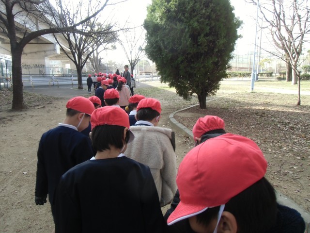 1年生が生活科の学習で、学校のまわりへ「ふゆみつけ」に出かけました。