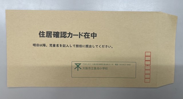 封筒の中身をご確認いただき、必要書類をお子様に持たせてくださいますようお願いいたします。