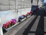 地域の方々が、学校の西側にきれいな花をプランターに植えて、並べていただきました...