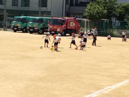 今日の体育は、ボールを使って、運動しました。