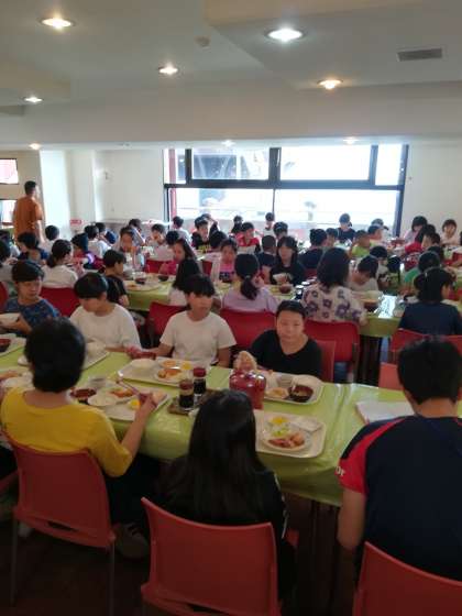 チャレンジ海教室、2日目。おいしい朝食をいっぱい食べて、今日も元気にがんばります。
