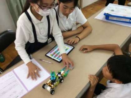 「未来の生活を想像しよう」という単元で、介護ロボットをグループで考え、レゴを使って作り、動かしました。