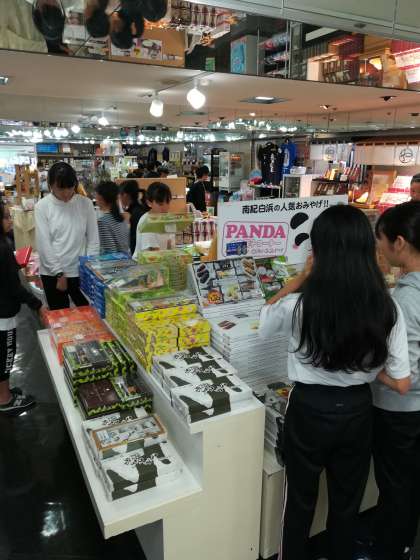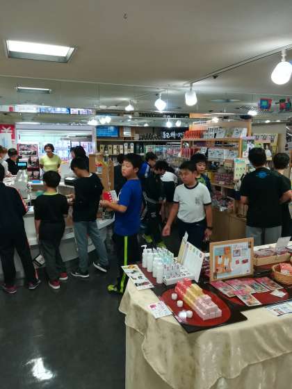 おみやげタイム。渡す人のことを考え、笑顔いっぱいにおみやげをえらんでいました。