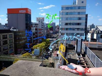 ひさしぶりに、学校のおく上から南の方角を見てみましょう。わたしたちの町のようすをかんさつしてみましょう。