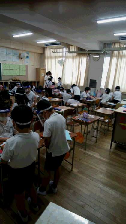 グループで学習するときなどはフェースシールドを活用しています。