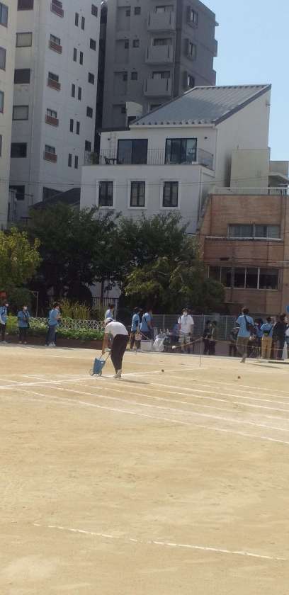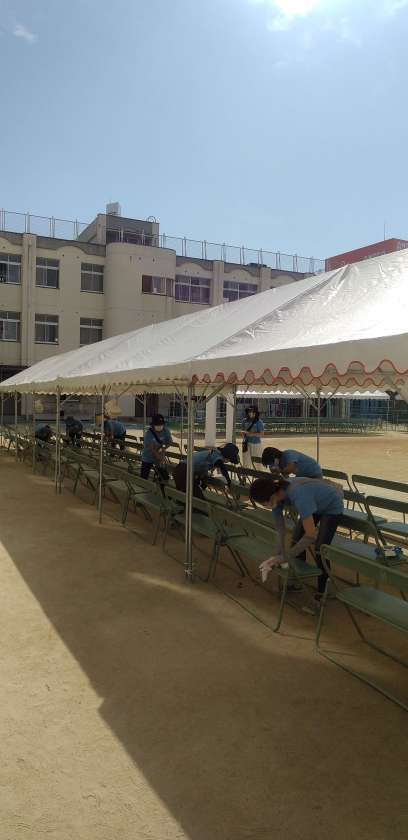 PTAのみなさんに座席の消毒や受付をしていただいています。