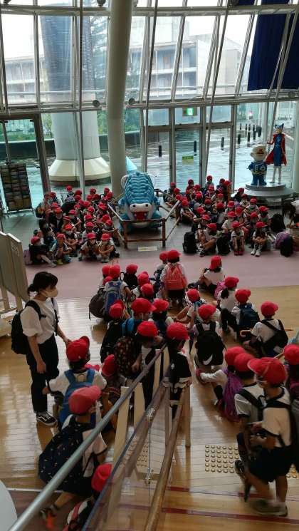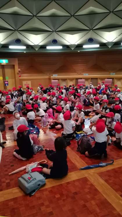 お弁当の時間です。外は雨だけどここなら安心。手の消毒もしました。