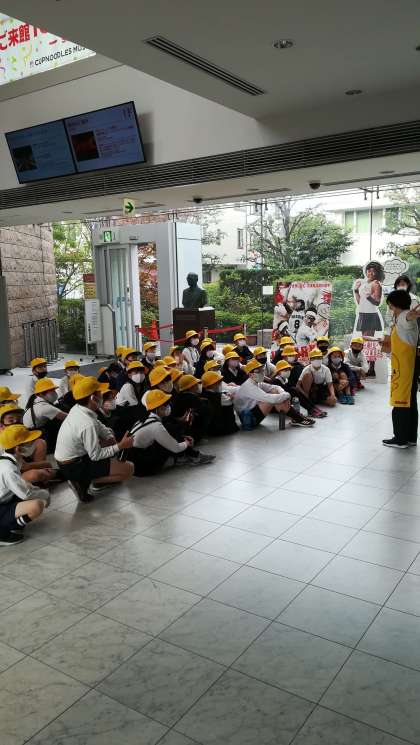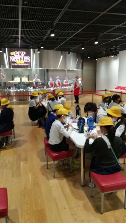 楽しみにしていたカップヌードルミュージアムに到着。みんなでカップヌードルのカップにオリジナルのデザインを描き入れています。どんな作品が出来上がるでしょうか。