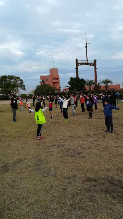 朝の集い。みんなで元気よくラジオ体操をしました。