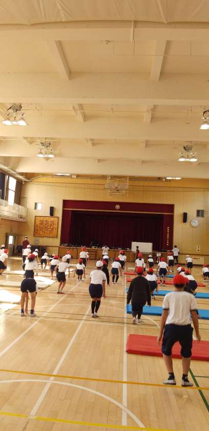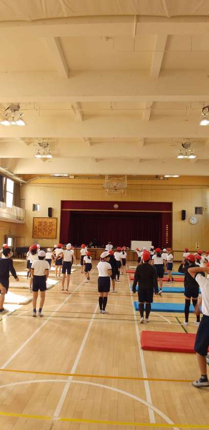 運動指導員の方に来ていただき、マット運動に取り組みました。