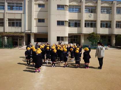全校朝会にむけて運動場で並び方の確認をしました。みんなできれいに並ぶことができました。