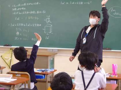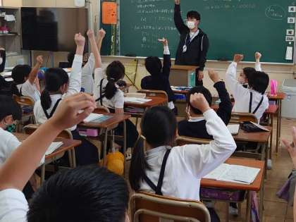 友だちの発表を聞いて、同じ意見だと「グー」のハンドサインで表現していました。