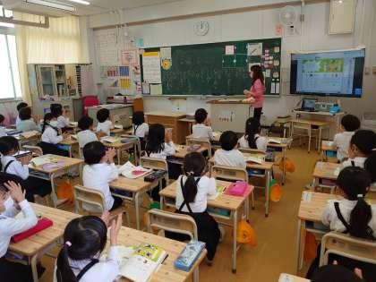 「ばんりのちょうじょう」や「じてんしゃ」等の伸ばしたり詰まったりする言葉については、手拍子をしながら発音し、読みやすくする工夫をしていました。