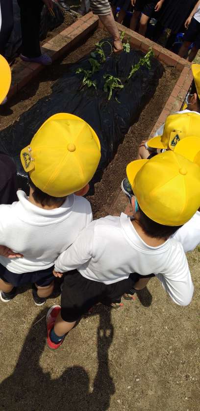 学習園に「さつまいも」を植えたり、「ミニトマト」の観察をしたりしています。