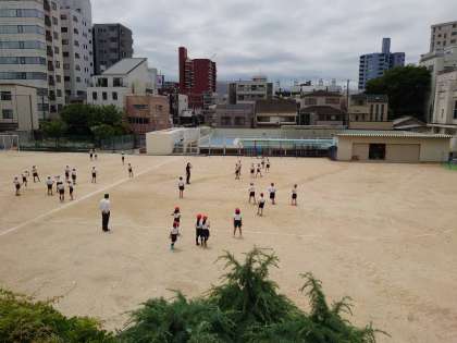 密にならないように広がって色々なボールの投げ方を試しました。体を動かすことができて、すっきりした児童が多く、楽しそうでした。