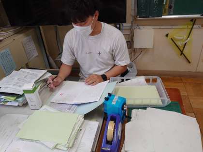 今日は久しぶりの通常の登校時刻です。朝から大量の提出物をチェックしています。
