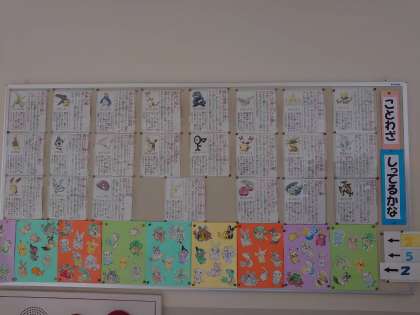 いろいろなことわざを、ポケットモンスターのキャラクターとともに廊下に掲示しています。