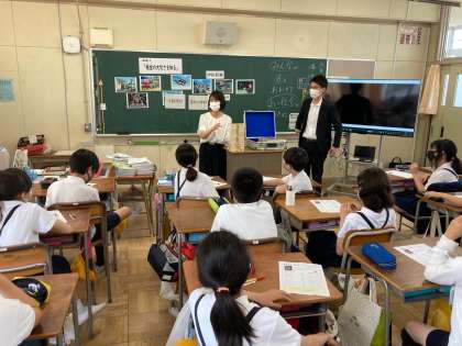 租税教室では、1千万円の大きさを確かめたり、理科実験では顕微鏡を使って植物の水の通り道を見たりしました。