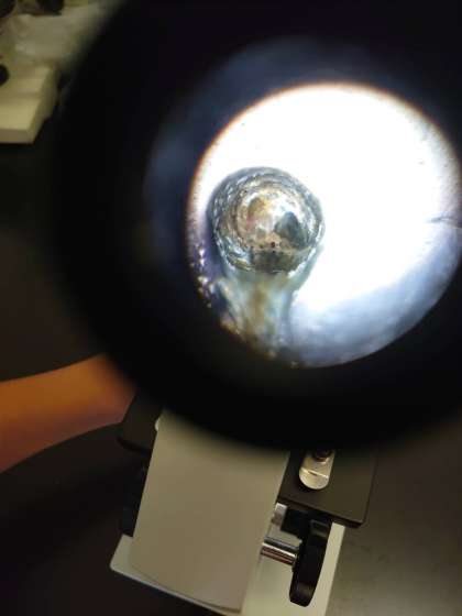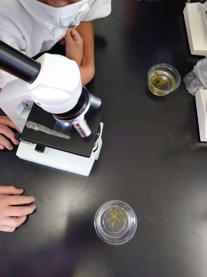 肉眼でも見ることはできますが、細かいところは顕微鏡で観察をします。