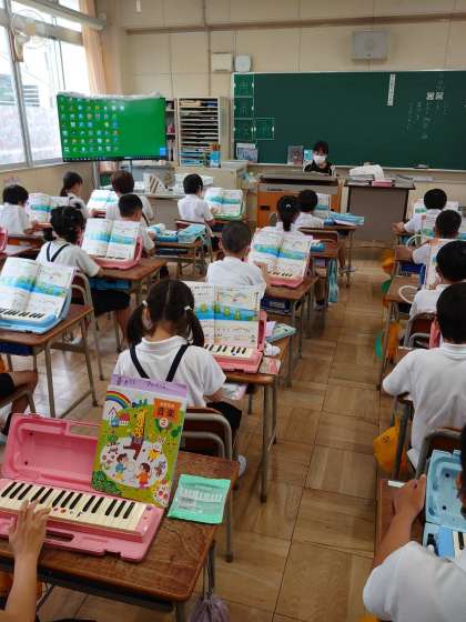 鍵盤ハーモニカで「かっこう」、「かえるのうた」を演奏しました。