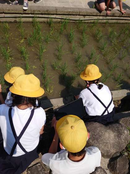 稲の観察を行いました。田植えの時から大きく成長しました。