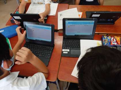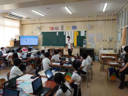タブレットを用いて自分の考えを表したり、意見を表示したりして学習を進めました。