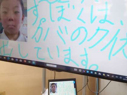 自分が何の動物のクイズを作成したのか、説明するスライドを作成しました。