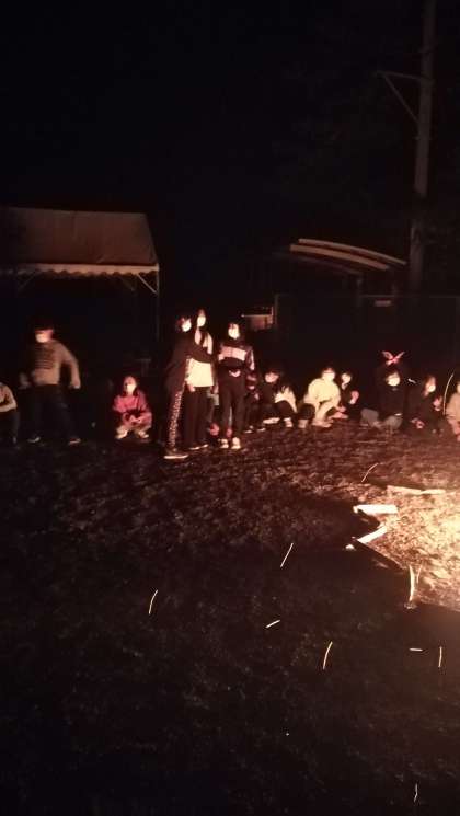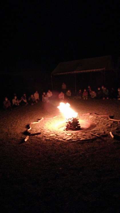 キャンプファイアー。少し風がありましたが、キャンプファイアーで色々なゲームをしました。