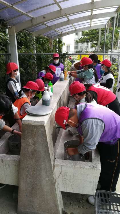 食べ終わった後は後片付け。ここでもしっかり協力できています。