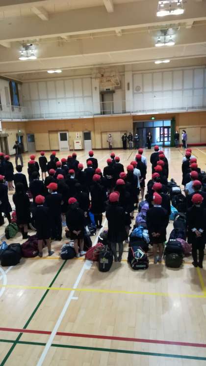 帰校式。みんなで苗代小学校にもどってきました。今回のチャレンジ海教室を通して学んだことをこれからにいかしていきます。