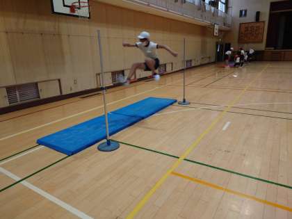 棒高跳びをしています。成功するごとに棒を高くしていっています。
