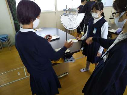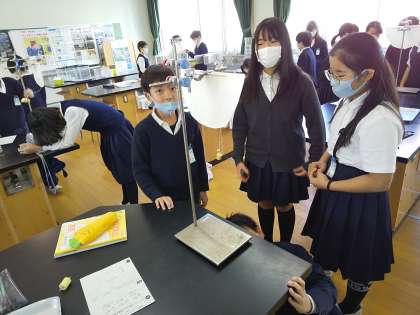 理科の学習でふりこのきまりを見つける実験をしました。ふれはば・ふりこの長さ・おもりの重さをそれぞれ変えたとき、1往復する時間が変わるかどうかを調べました。