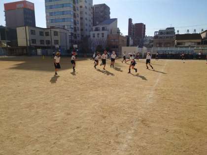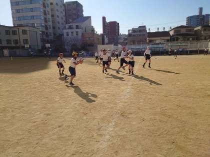 みんなタグをとられないように、ステップをふんで相手をよけて進んでいます。