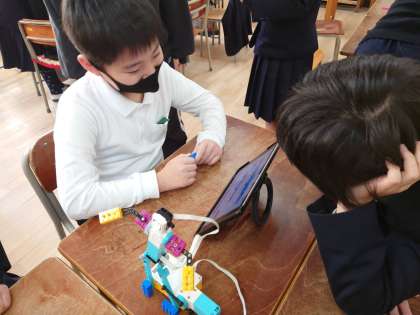 レゴのSPIKEを用いて理科の人体の単元の学習に絡めて学習を行いました。