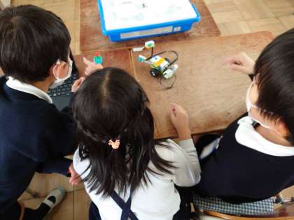 3組でもレゴのWeDo2.0を使用し、プログラミングの授業を行いました。