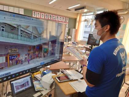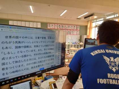 6年2組は朝からオンライン授業を実施しています。1時間目は社会でした。世界の国々について学習していました。