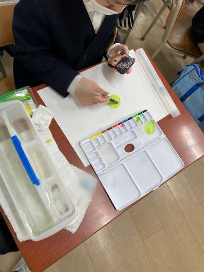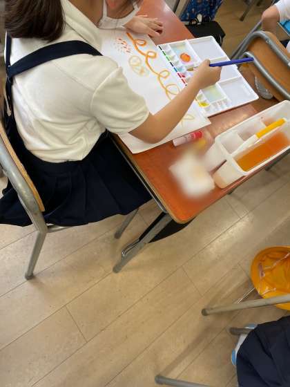 絵の具の量や水の量を変えながら、いろいろな線で模様を描きました。