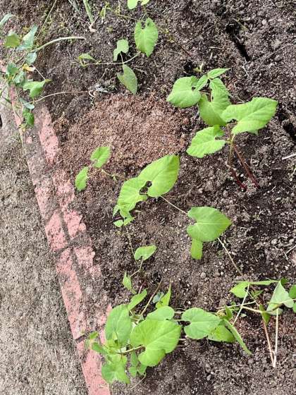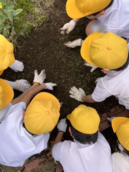 発芽の実験で使ったインゲンマメを学習園に植え替えを行いました。