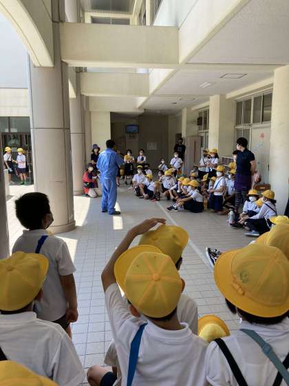 4年生がパッカー車の体験授業に取り組みました。興味を持ってしっかり話を聞いていました。