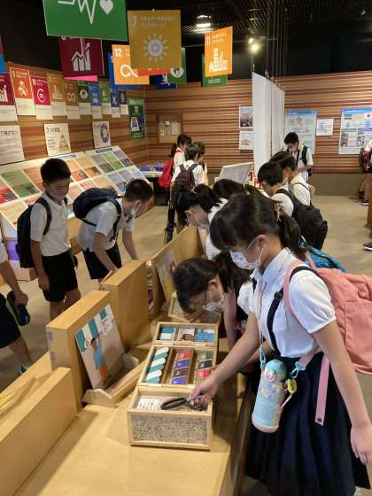 色々な展示物を見たり触ったりして世界のことやSDGsについて学んでいます。