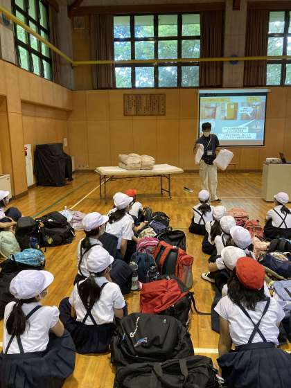 自然の家に到着。開所式を終えて宿舎のルールを聞きました。