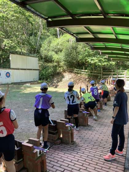 アーチェリーでは、的に当たるよう一生懸命がんばっていました。